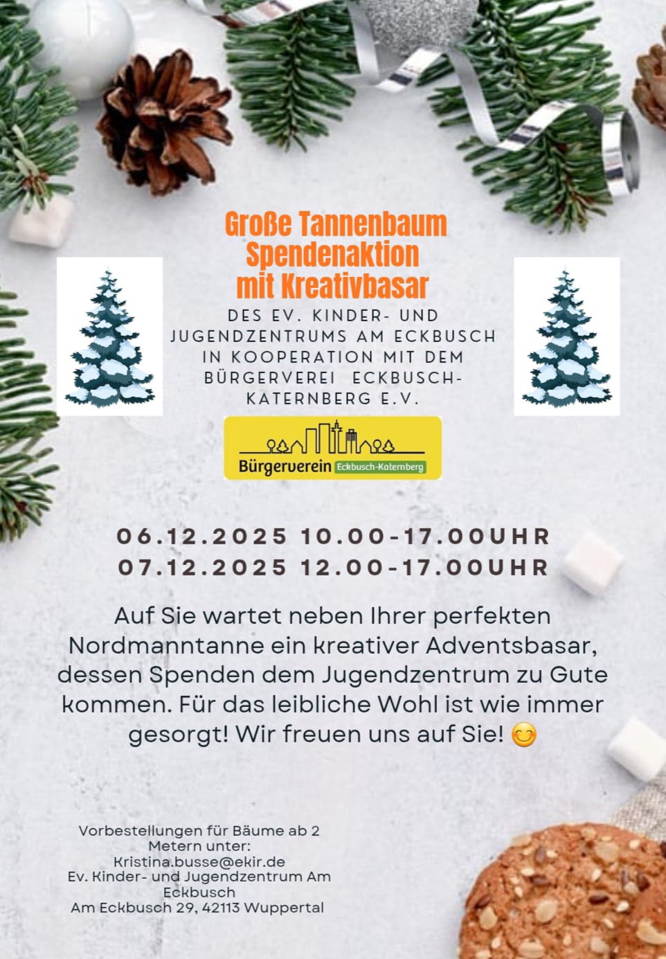Die Veranstaltung wurde begleitet von ortsansässigen Musiker*innen (u.a. Vox Vallis, Sinfonietta-Trio, einem Cello-Quartett, einem Nachwuchs-Zauberer und Schülergruppen der Schulen,…). Der Erlös kommt Schülerkursen und der Spielplatzgestaltung am Eckbusch durch einen schattenspendenden Baum zu Gute.