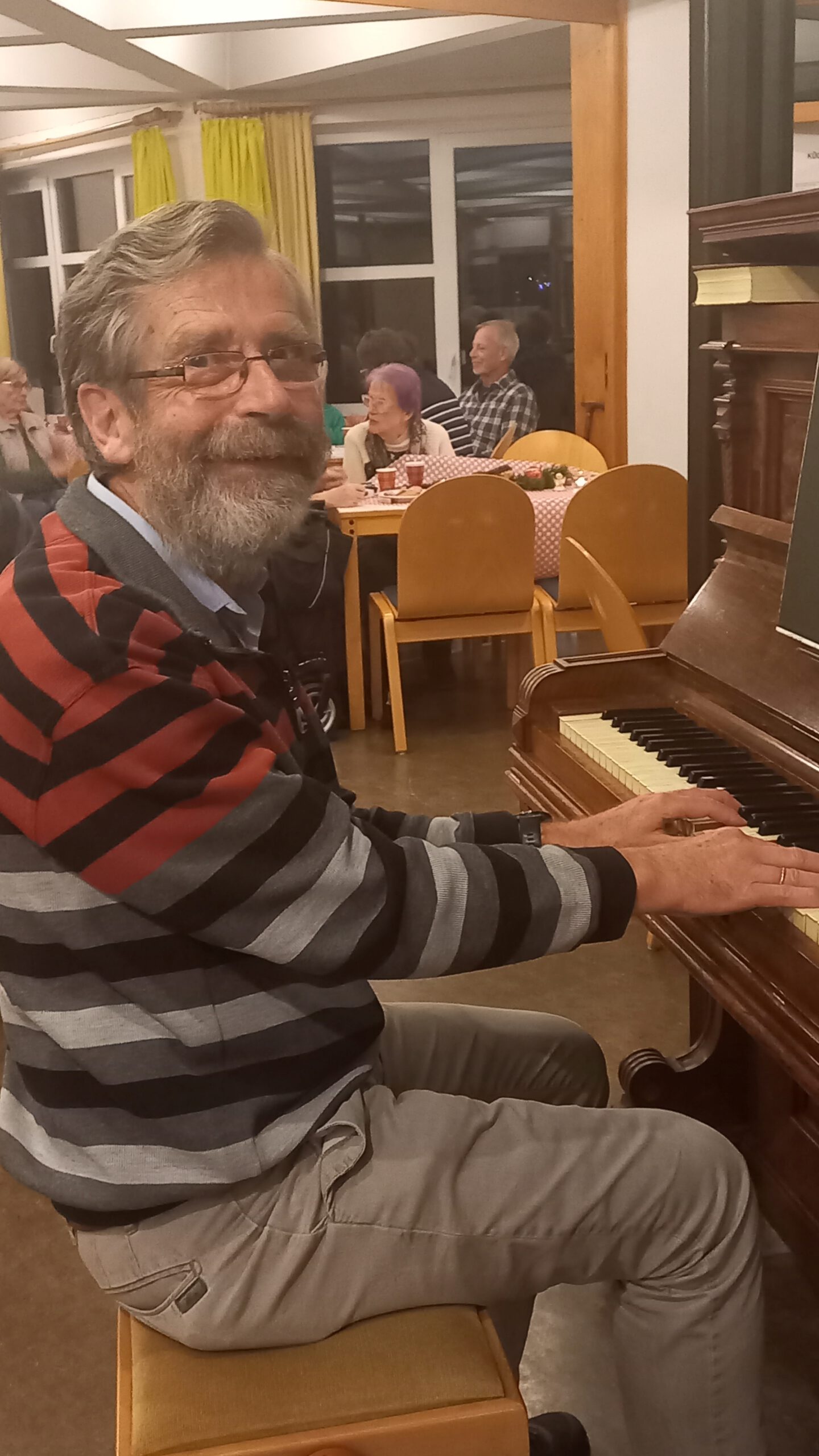 Die diesjährige Winterveranstaltung stand ganz im Zeichen von (vor)weihnachtlichen Liedern, deren Texte für die Besucher bereit lagen. Unterstützt durch die prägnante Klavierbegleitung von Martin Blunck und die gewaltigen Stimmen dreier Colourschor-Mitglieder gelang das Singen trotz fehlender Talente uns Anderer ziemlich gut. Im nächsten Jahr soll die Veranstaltung am 1. Advent wieder stattfinden. Wer möchte, kann dann dort auch selbst etwas vortragen. So ist jedenfalls die Planung. Die Organisatoren würden sich über weihnachtliche Beiträge der Gäste total freuen.