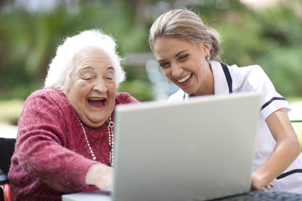 Startseite » Glckliche Krankenschwester und ltere Frau mit Laptop » Glckliche Krankenschwester und ltere Frau mit Laptop